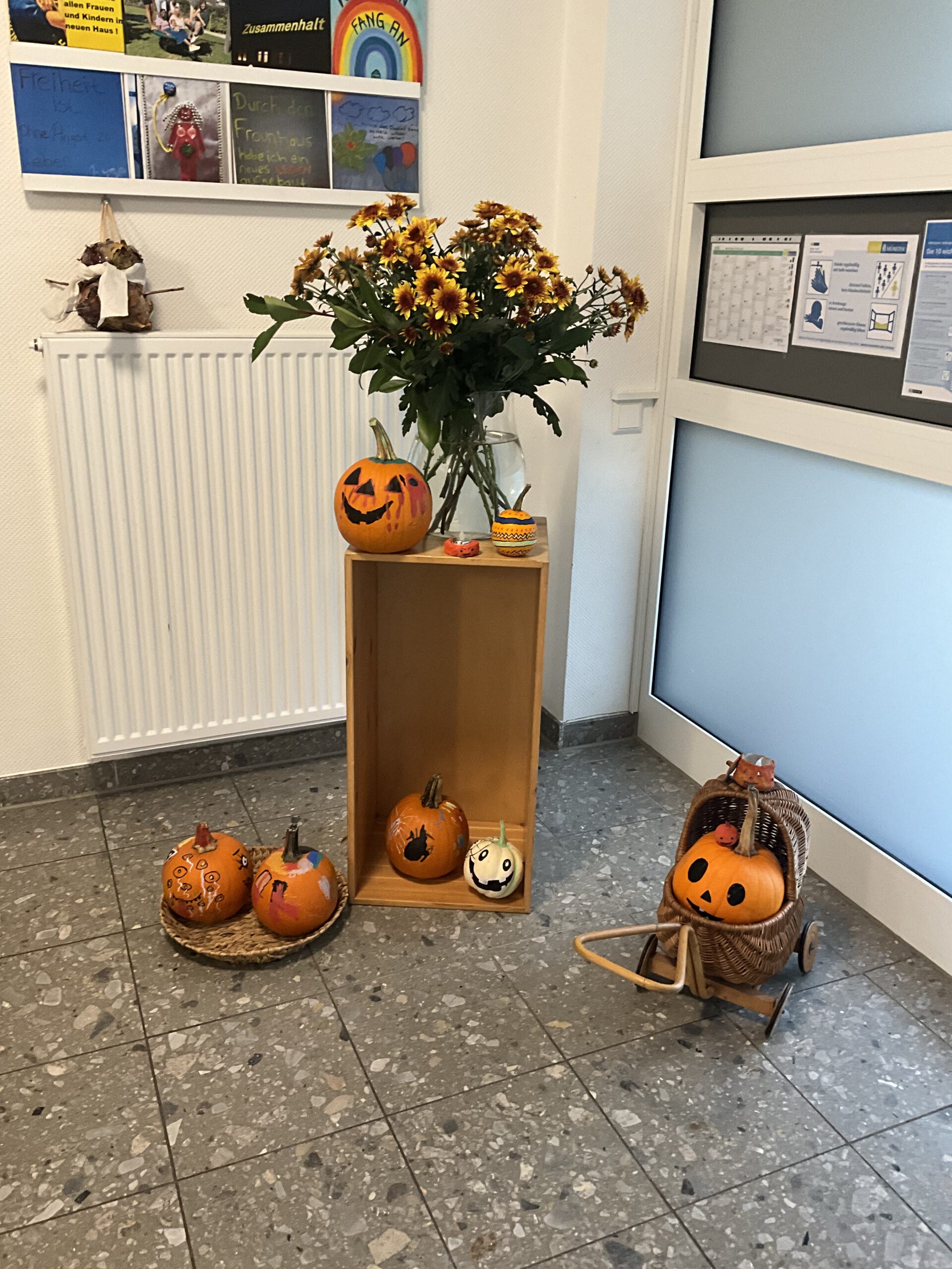 Gemeinsam waren wir im bunten Wald spazieren, haben Kürbisse auf dem Kürbishof bestaunt, bemalt und später geschnitzt. Die Kürbisse sehen jetzt richtig toll aus und sorgen für herbstliche Stimmung bei uns im Haus.